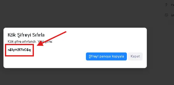Ardından yeni şifreniz karşınıza çıkacaktır unutmamak için yeni şifrenizi not alın.