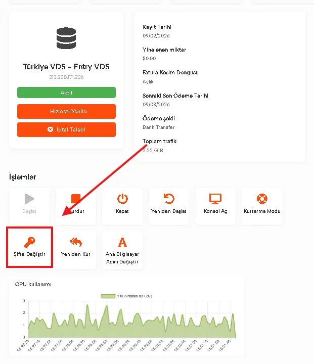 - Müşteri Paneli Kullanımı: Panelinize eklediğimiz “Şifre Değiştir” butonu en hızlı yöntemdir. Bu araç, Windows sistem dosyalarına müdahale ederek erişimi saniyeler içinde yeniler.